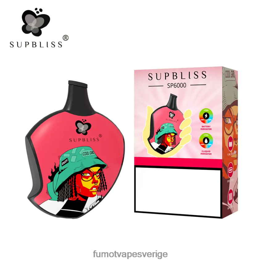 supbliss sp6000 puffar engångsvapepod är en av de trendiga engångsvaparna från fumot tech! Varje sp6000 engångsvapepod är förfylld med 12 ml olja, som kan hålla upp till 6000 bloss. denna vape pod-enhet som använder mesh coil-teknik, har ett inbyggt 550 mah uppladdningsbart batteri och en typ-c-laddningsport på undersidan. sp6000 har en speciell formdesign, vilket gör att den ser lite annorlunda ut.